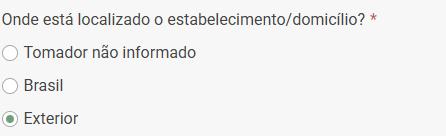 No campo “Tomador do Serviço”, selecione a opção “Exterior”.