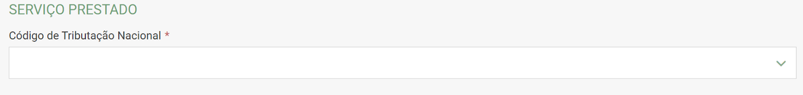Em “Código de Tributação Nacional”, digite o serviço prestado.