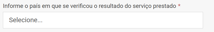 Informe o país onde o serviço foi prestado e o resultado ocorreu.