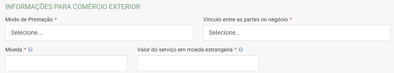 - Valor do serviço em moeda estrangeira: preencha o valor correspondente na moeda escolhida.