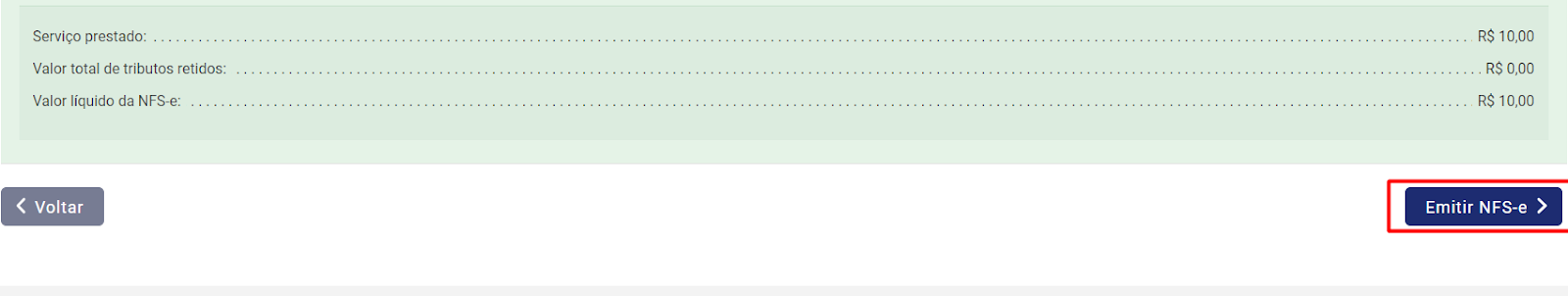10. Para finalizar basta avançar a tela, revisar as informações preenchidas e concluir a emissão, no botão Emitir NFS-e.