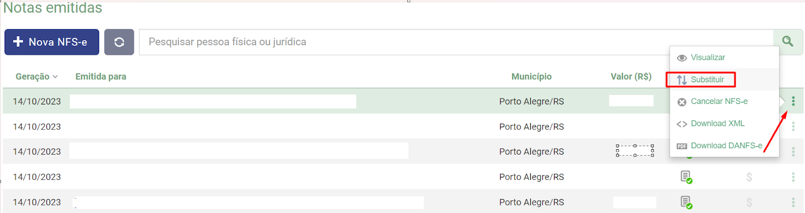 Se a substituição na prefeitura ocorrer depois da importação da nota na Plataforma, é necessário importar a nota substituta e registrar o cancelamento no menu “Notas Fiscais > Cancelar Nota Fiscal”.