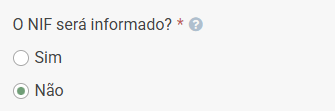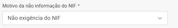 Se selecionar “Não”, informe o motivo escolhendo “Não exigência do NIF”.