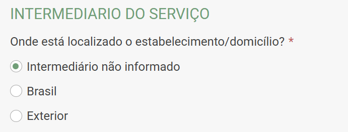 No quadro “Intermediário”, marque a opção “Intermediário não informado”.