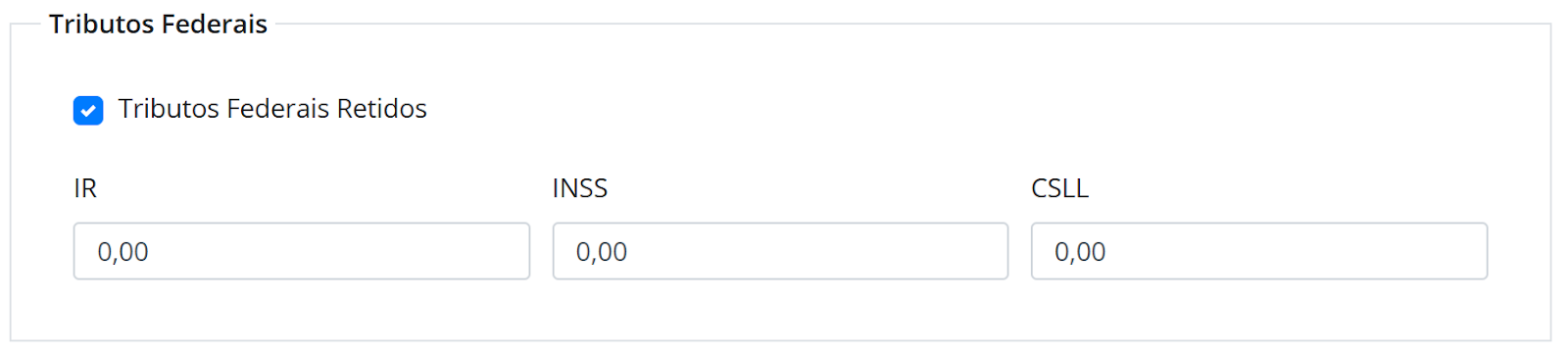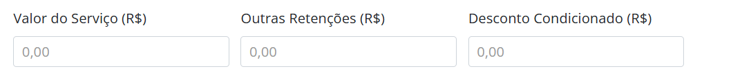 Nos campos abaixo você poderá incluir os valores retidos na Nota Fiscal.