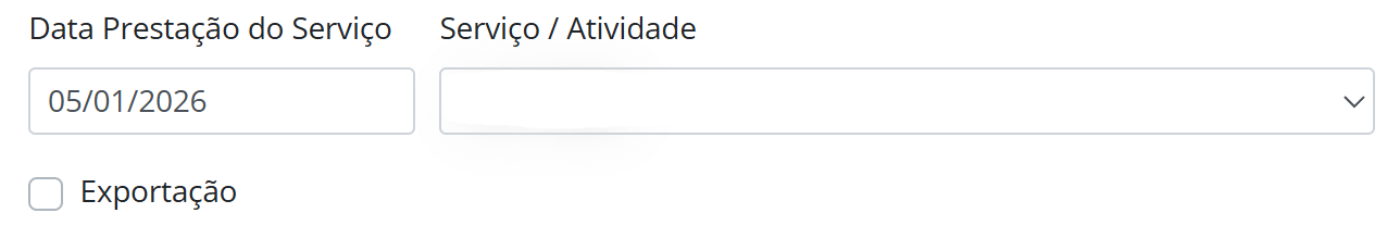 Se a operação atender aos requisitos de exportação de serviços, marque a opção Exportação. Caso contrário, deixe o campo desmarcado.