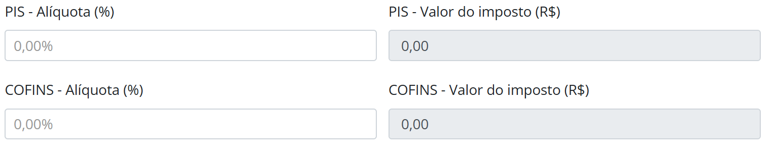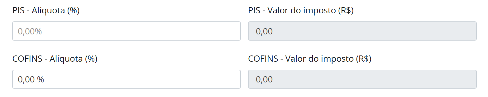 PIS — Valor do imposto (R$) — mantenha 0,00.