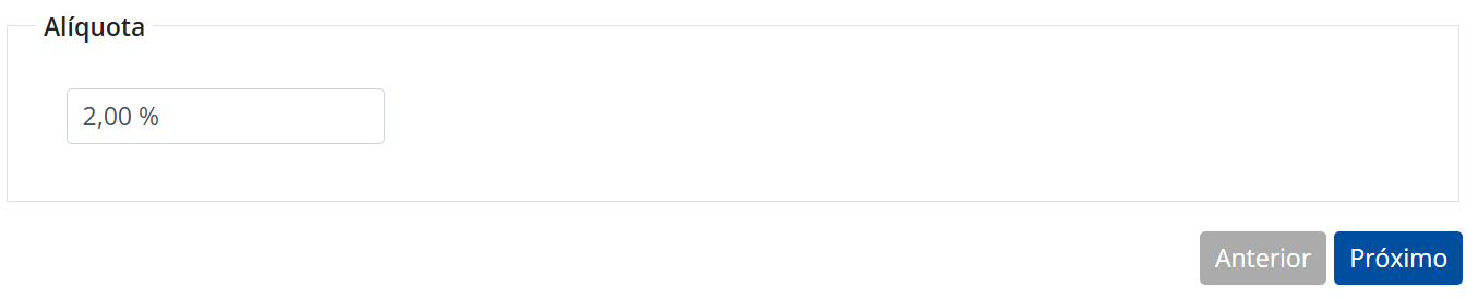 No campo Alíquota, preencha com o percentual de ISS aplicado à sua empresa no Simples Nacional e clique em Próximo.