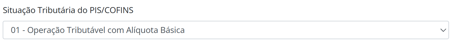 No campo Situação Tributária dos PIS/COFINS selecione 01 — Operação Tributável com Alíquota Básica