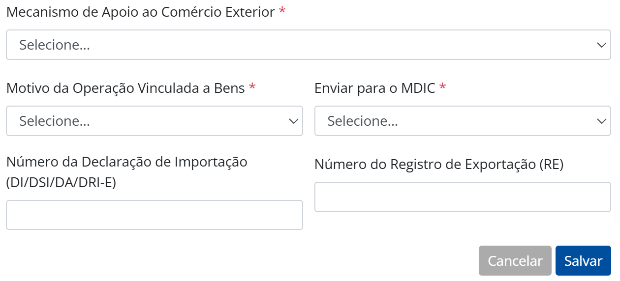 Enviar para o MDIC: Não enviar para o MDIC