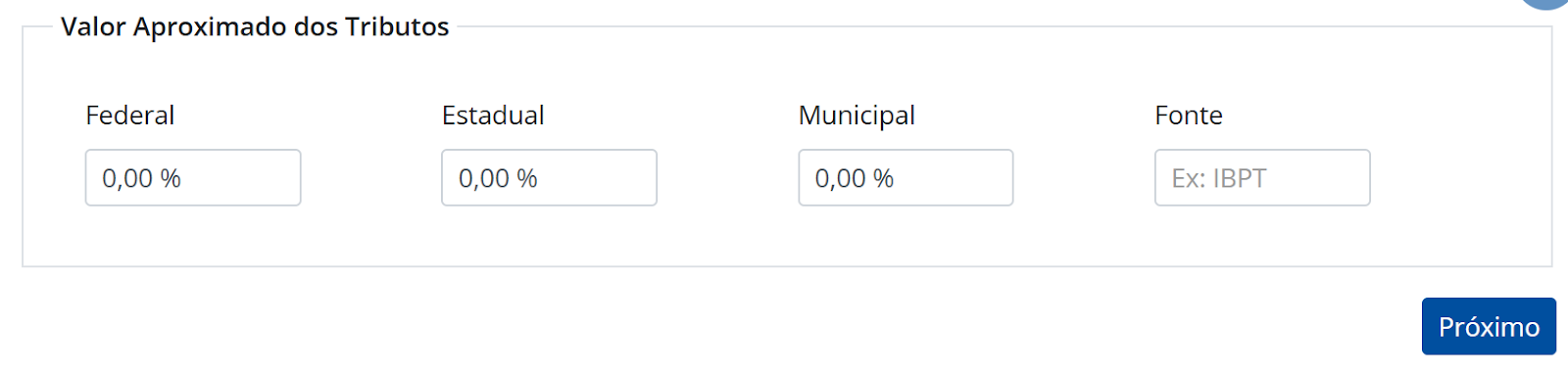 O campo Valor Aproximado dos Tributos deve permanecer sem preenchimento e clique em Próximo.