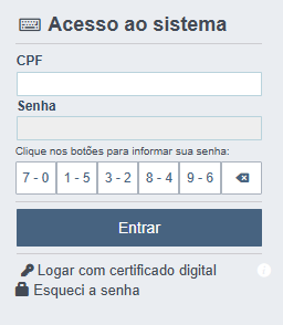 Clique aqui para fazer o login utilizando seus dados de acesso. Caso possua dúvidas sobre o usuário e senha, você pode consultar na plataforma da Contabilizei, clicando aqui. Você também pode fazer o login utilizando seu Certificado Digital, clicando em: Logar com certificado digital. Veja aqui como baixar e instalar o Certificado em seu computador.