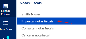 Com o arquivo em mãos, acesse aplataforma da Contabilizei, no menu Minhas Rotinas > notas fiscais > importar notas fiscais. Ou clique aqui.