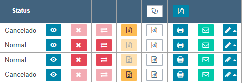 Agora, na linha da nota fiscal que necessita ser cancelada, clique no ícone em vermelho que indica a cancelamento.