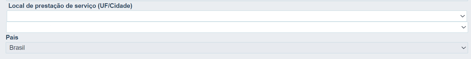 Município Incidência (UF/Cidade) e Local de prestação de serviço (UF/Cidade): Será preenchido automaticamente.